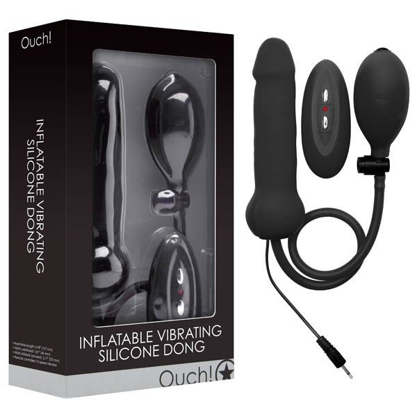 Ouch Inflate vibrating Dong silicone black, pene hinchable fabricado en silicona. Con vibración y resistente al agua.