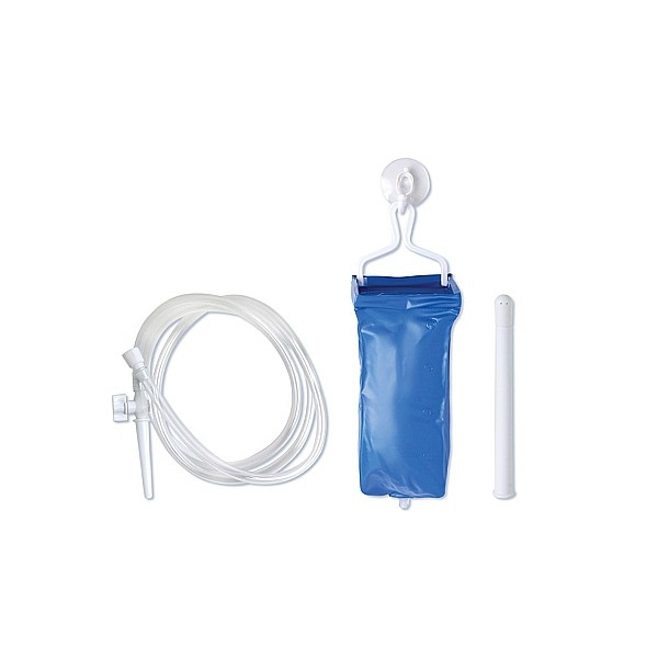 Solo tiene que llenar la bolsa de color azul con 2 litros de agua y ajusta el flujo con la válvula que hay en la base del aplicar.