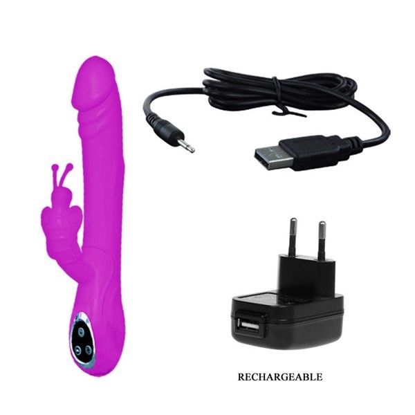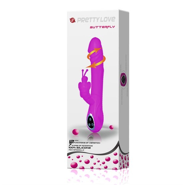 Vibrador conejito rampante. Pretty Love Butterfly rotador de diseño lujoso. Fabricado en silicona muy suave. Fácil de usar y de limpiar.
